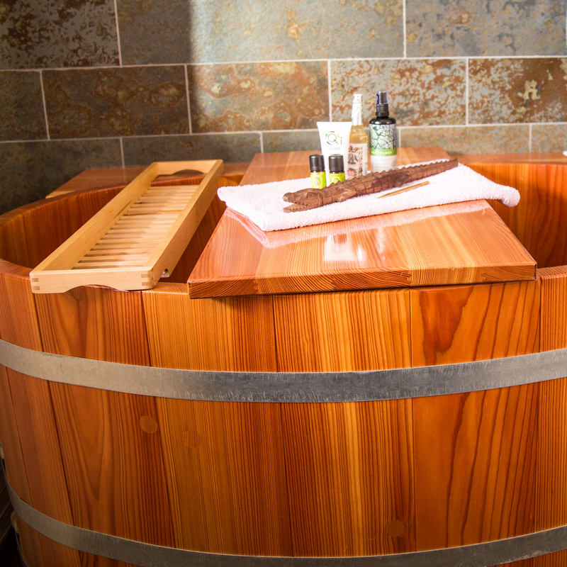 Das Holz-Zimmer ist nach Osten ausgerichtet. Die Energie des Ostens fördert Inspiration und Kreativität, stärkt Leber und Gallenblase. Im Schlafbereich steht ein Doppelbett aus Buchenholz für 2 Personen. Im angrenzenden Wohnbereich gibt es neben den 2 großzügigen Liegen einen Schreibtisch und ein Sat-TV.